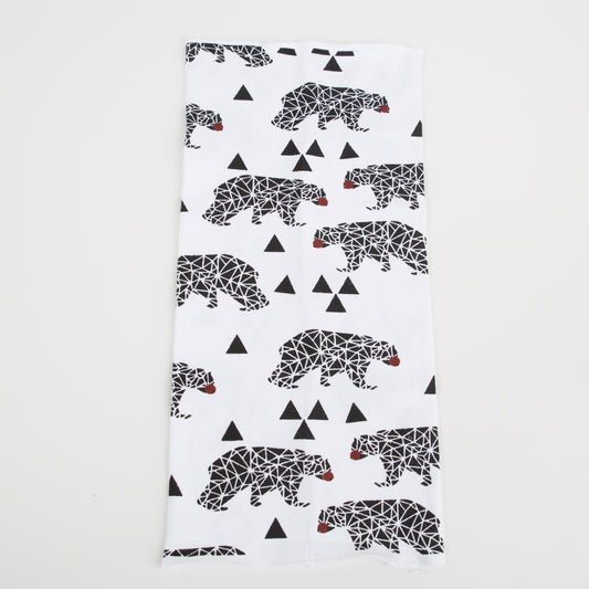 Baumwoll-Schlauchtuch Bär weiß-schwarz